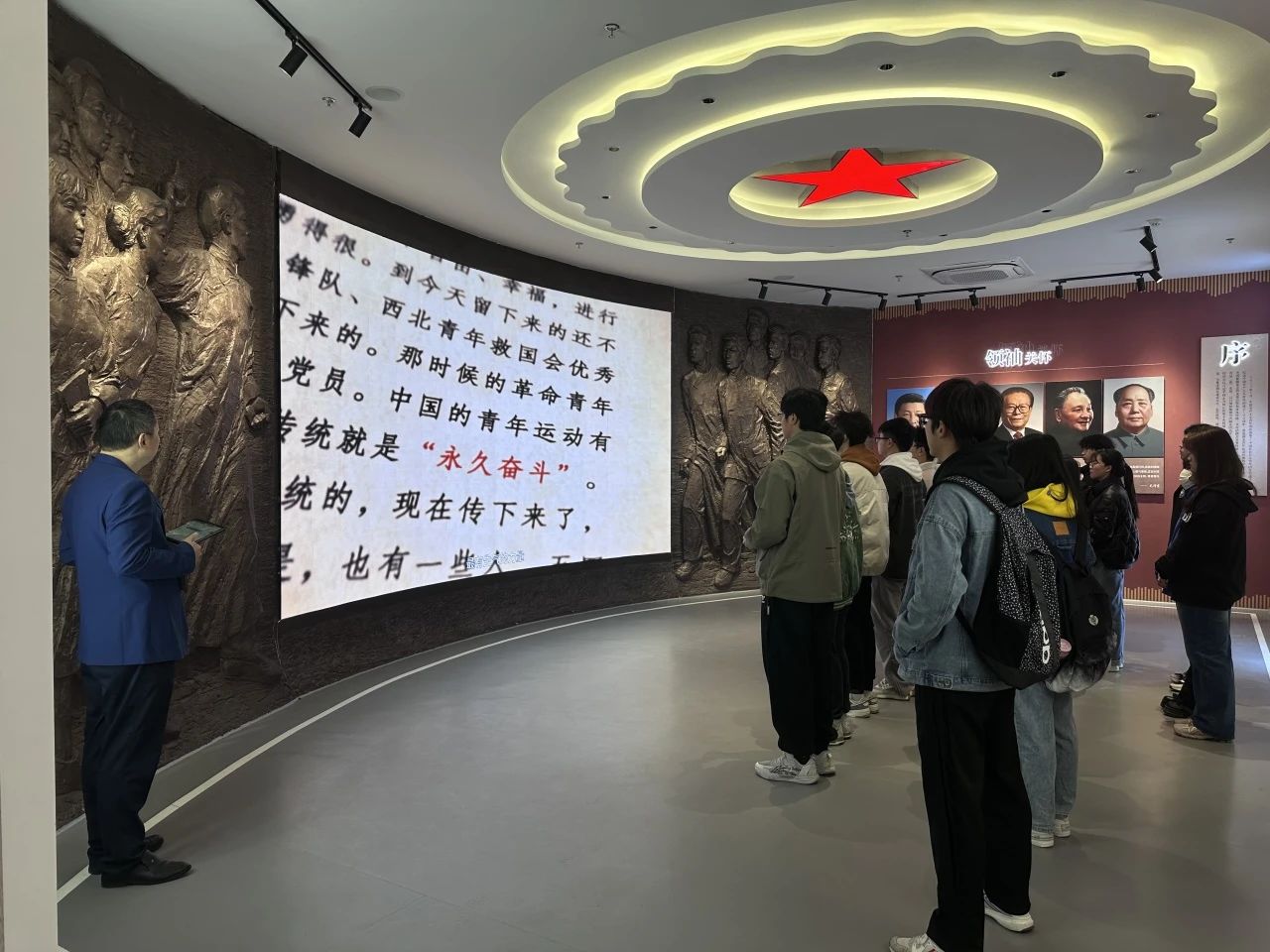 进入团校,同学们以昂扬的士气喊出了我们的口号“强国有我,请党放心”,便由专家的带领下开始参观,同学们观看了团史大事记视频,了解了更多先辈的英雄事迹。随后,专家向大家讲解介绍了团史以及党史的很多成立经历和先辈们保家卫国的无私奉献、光荣事迹、优秀成果。