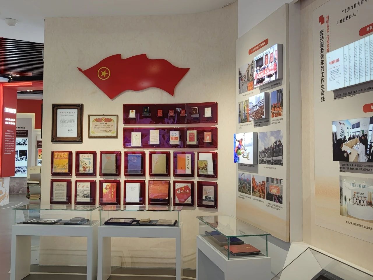 琳琅满目的展台记录满了先辈们当年的英勇,他们不畏艰险,他们勇立潮头,展现了激昂的青春力量。在展廊的尽头挂着几个大字“百年历史,仅此图文,容量有限,精神无穷!”是啊!时光飞逝,历史已经被浓缩;抚今追昔,征途依旧任重道远。我们能做到的就是将先辈们的这份精神继续传递下去,继续传递共青团和青年永远跟党走、矢志复兴的光荣征程。