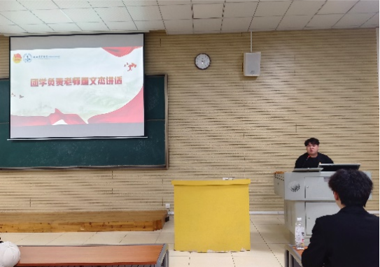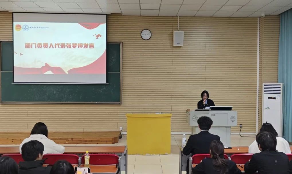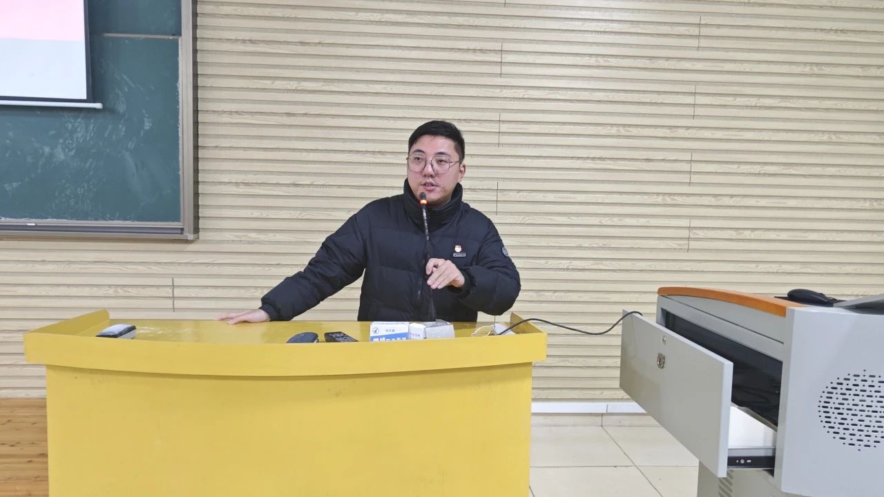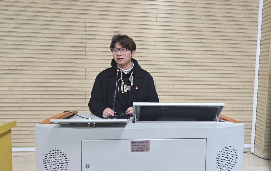 公司咸宁校区团学负责老师唐文杰讲话,他表示公司团学干部要深知自身肩负的责任与使命。将秉持服务同学的宗旨,不断努力提升自身能力和素质,以实际行动去践行。