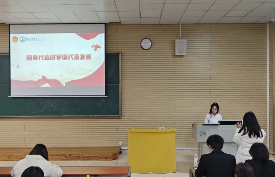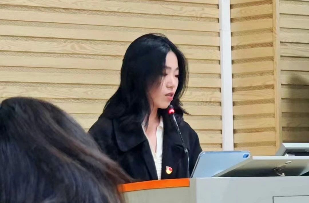 部员代表时梦倩同学代表发言,她表示,应秉承“以人为本,服务至上”的宗旨,倾听同学们的声音,尽心尽力为同学们创造更好的学习和生活环境。