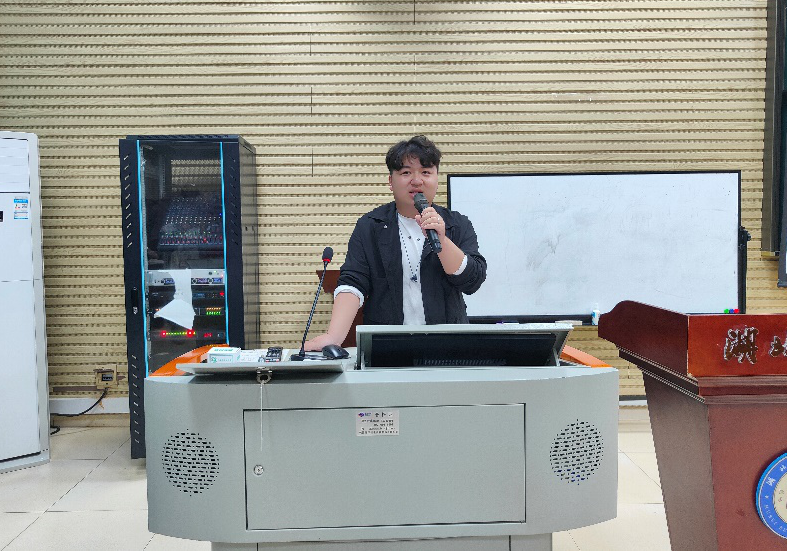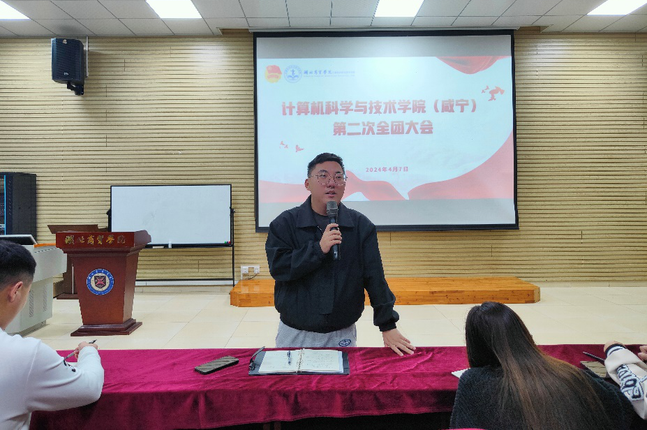 会议第三项,唐文杰老师发言,他对下一阶段的公司团学工作开展做出规划和要求,希望全院员工干部对待工作要做到用心、耐心和创新。