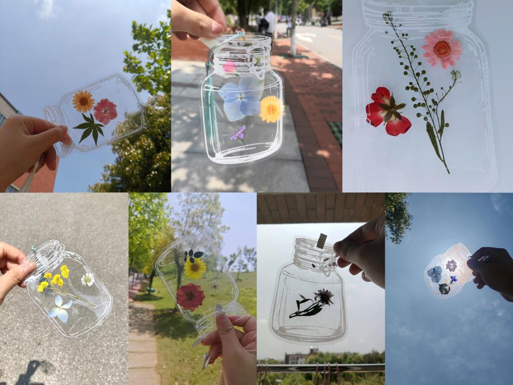 在活动现场,参与同学通过PET贴纸和干花的巧妙组合,亲手制作属于自己的干花书签,创作出独一无二的艺术品。