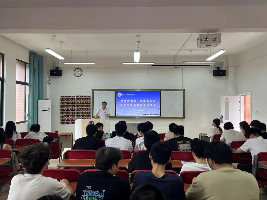 在“学悟新思想,毕业再出发”2024届毕业生感恩教育主题班会上,毕业班辅导员吴晶老师首先带领毕业生们一起回顾大学时光,畅谈三年在校期间的学习、工作和生活的点点滴滴。随后吴老师就毕业生的就业状况、离校手续和档案转接的三个方面为毕业生们做了细致解释和说明,并号召广大毕业生遵纪守法、牢固树立安全意识,做到文明离校、有序离校,善始善终。毕业班辅导员丁诗卉老师为毕业生们送去了毕业赠言,丁老师对毕业生们顺利完成学业表示祝贺,并期望各位毕业在未来的日子里能感恩母校、保持学习和悦纳自我。同时她勉励同学们在人生新的起点上开拓进取,努力拼搏,带着母校的嘱托与期望,勤勉为先、自信担当,敢于吃苦、乐于奉献,把人做好、把事做实、把人生活得幸福精彩。