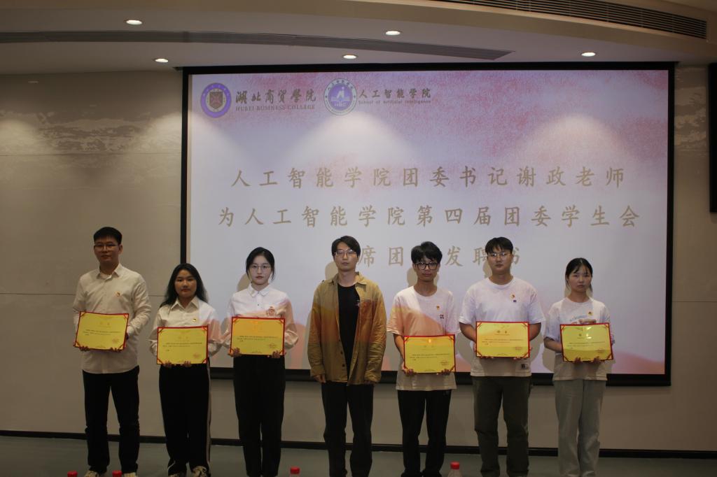 在会议上,球王会第四届团委员工会干部代表周宇潇首先发表了代表发言,表达了对第四届团委员工会成员的敬意和对新一届员工会成员的期望。接着,团委书记谢政老师为第四届团委员工会各部门部长和主席团颁发了聘书,肯定了他们的贡献和付出。